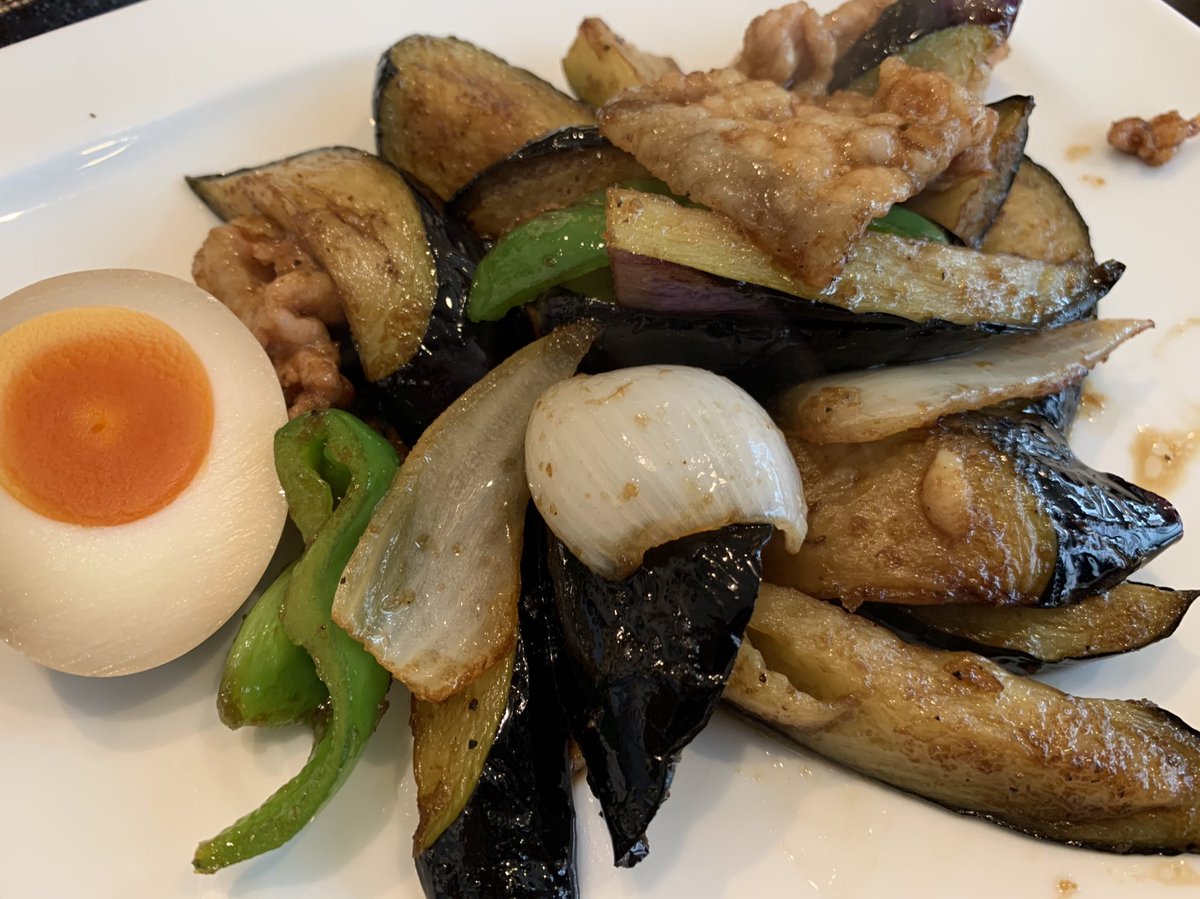 茄子の生姜焼き定食してます